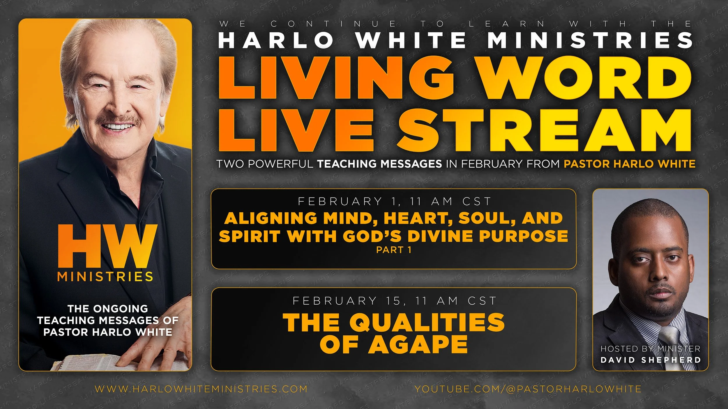 Join The Harlo White Ministries Living Word Livestream FOR TWO POWERFUL teaching MESSAGES IN February FROM PASTOR HARLO WHITE!
