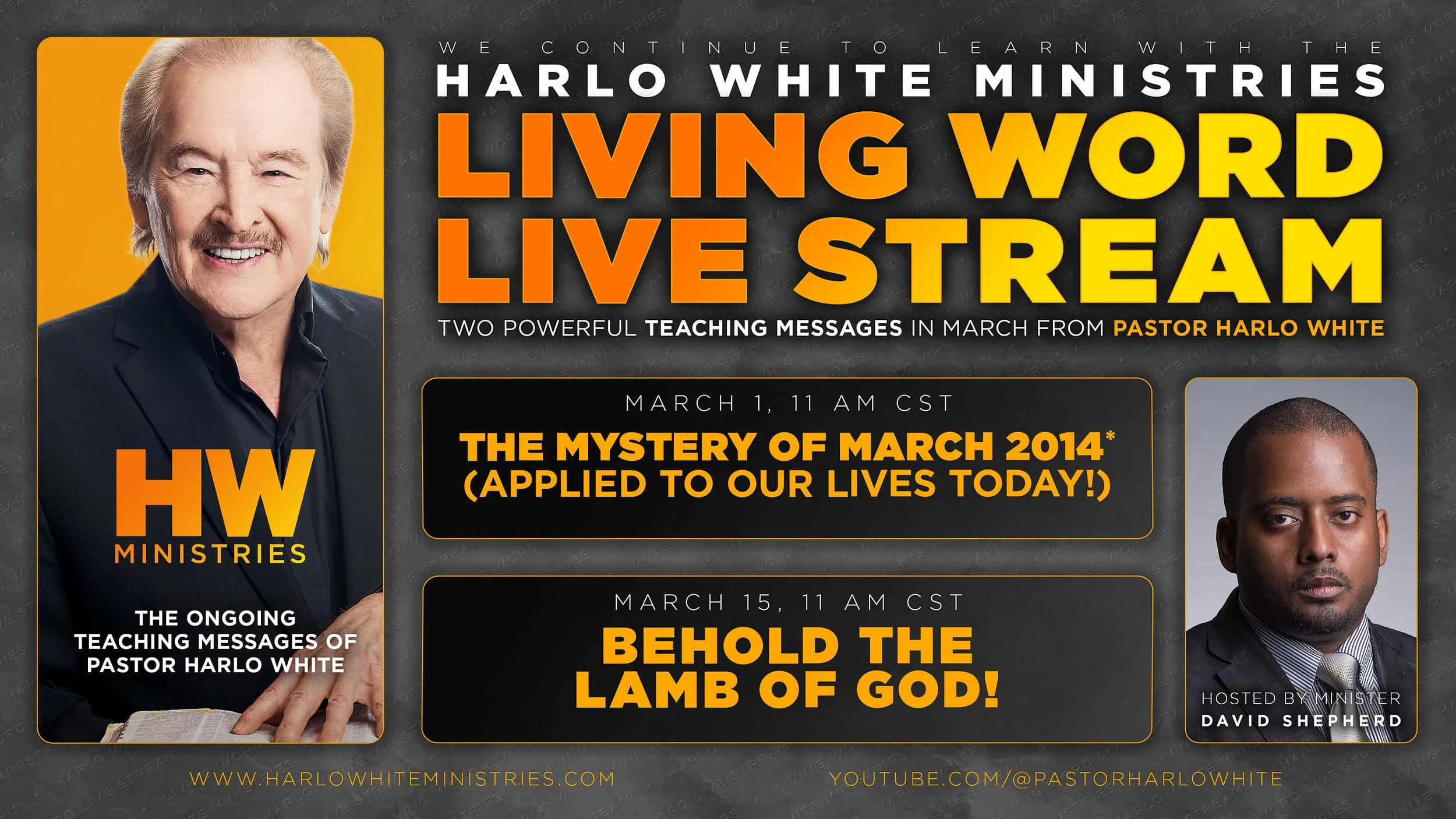 Join The Harlo White Ministries Living Word Livestream FOR TWO POWERFUL teaching MESSAGES IN MARCH FROM PASTOR HARLO WHITE!